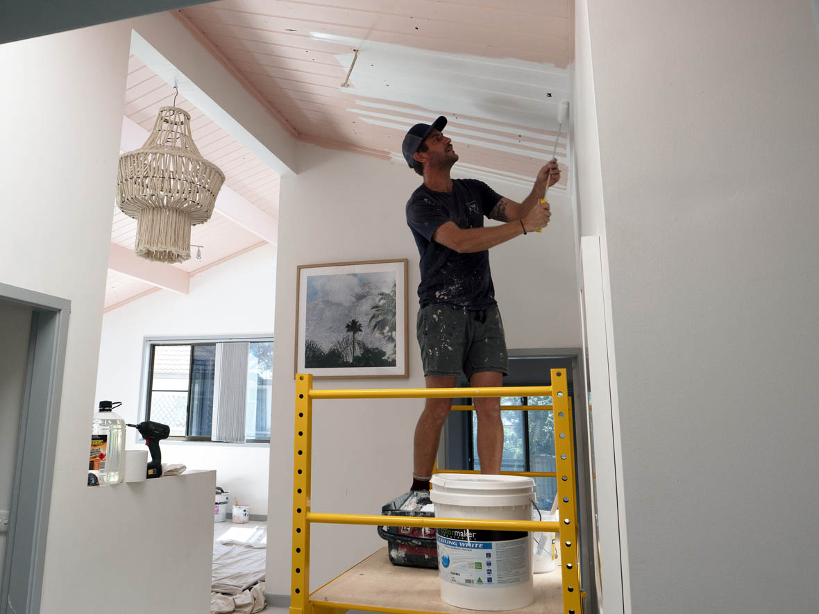 Previous Image Next Image Shannon Vos painting the ceiling with COLORMAKER Ceiling White – Lilli Pilli – Oct 2020