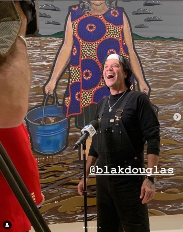Previous Image Next Image Blak Douglas in front of the microphone at AGNSW accepting his 2022 Archibald Prize Win for his portrait Moby Dickens