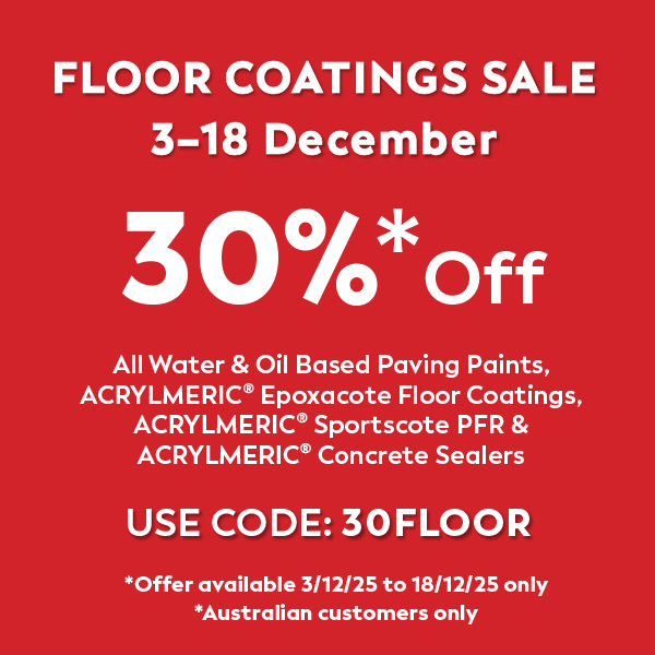 30% Off All Floor Coatings 3-18 December. Use code 30FLOOR. Australian customers only.