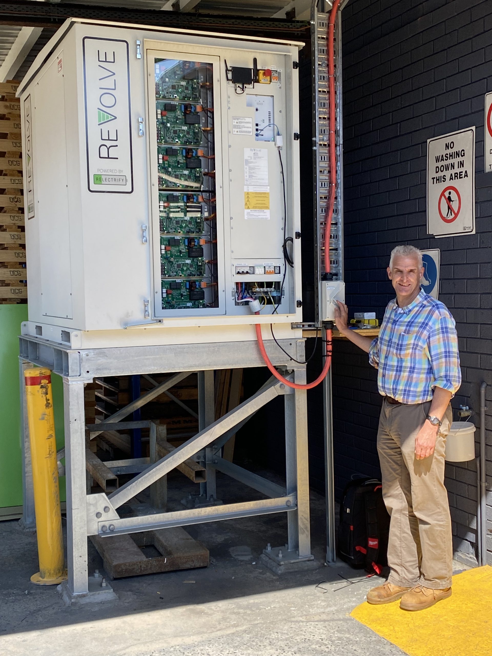 David Stuart MD of Colormaker Industries switches on the ReVolve battery 18.10.2023